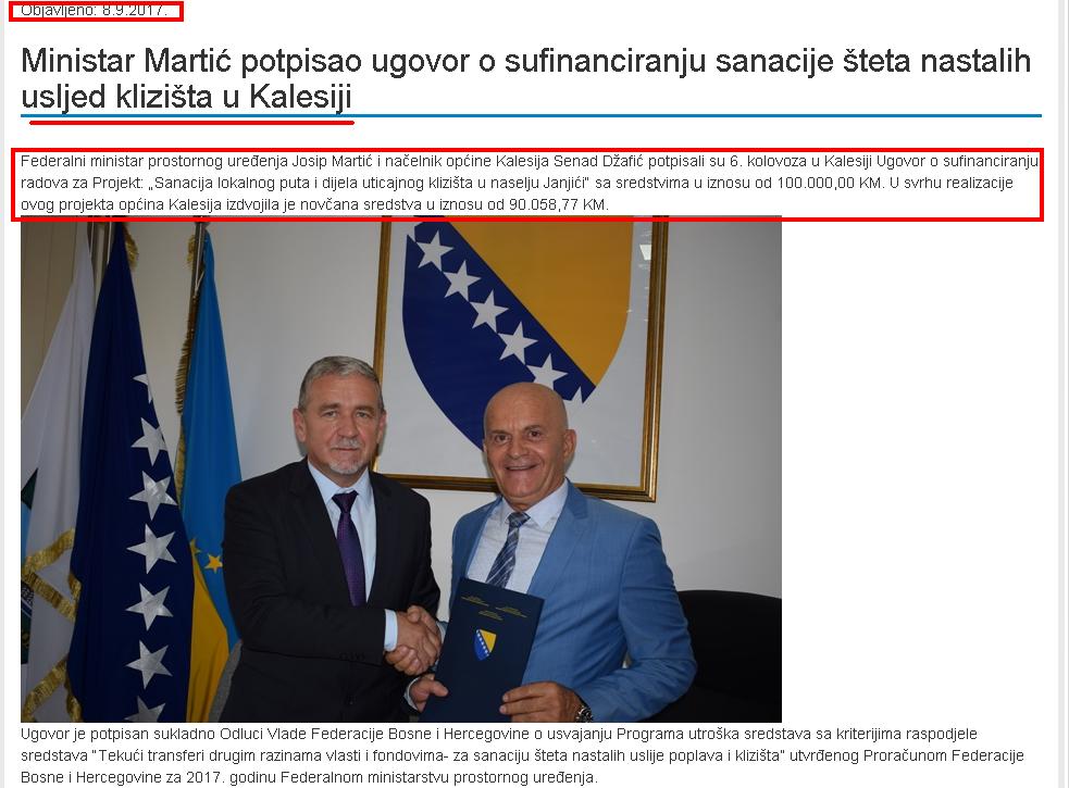 U obrazloženju svog pitanja Hamzić je naveo da je pomenuto Ministasrtvo obezbijedilo 100.000 KM na ime projekta uticaj klizišta i sanacija puta u naselju Jajići. Općina Kalesija je bila dužna raspisati javne nabavke za utrošak ovih sredstava, ali to nije učinjeno.