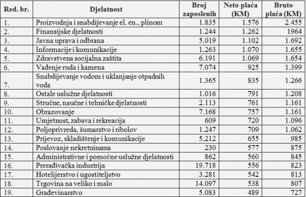Visoko kotira finansijski sektor sa prosječnom plaćom od 1.262 KM te informatička i oblast komunikacija sa 1.070 KM mjesečnih primanja.- Svi oni koji ističu svoje potrebe za povećanjam plaća trebali bi prvo pogledati na kom su nivou proizvođači. Svima nam je jasno ko stvara novac koji se javno troši. Na primjer, nama treba zdravstvo i dobri ljekari, ali oni sada imaju duplo veće plaće od proizvodnog sektora. Da se razumijemo naši ljekari su potplaćeni, ali moramo biti svjesni u kakvoj državi živimo – kaže Kikanović.