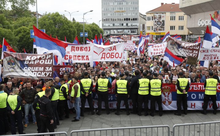 Protestni skup Saveza za promjene u parku Mladen Stojanović i miting podrške aktuelnoj vlasti u Republici Srpskoj na Trgu Krajine završeni su bez incidenata.