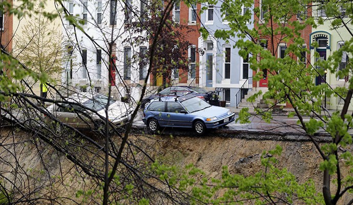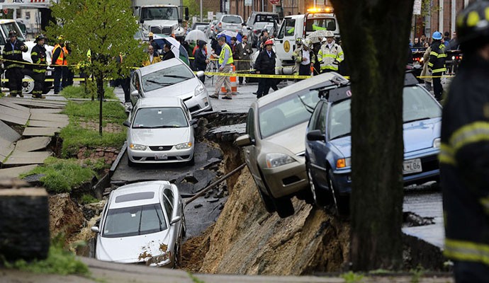 U američkoj državi Maryland, u gradu Baltimoreu, otvorila se džinovska rupa u zemlji izazvana ogromnim padavinama na tom području u posljednjih nekoliko dana.