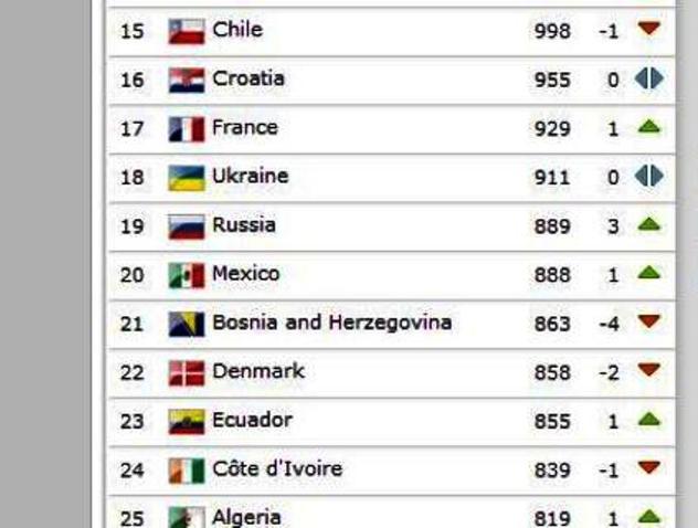 Veliki napredak je zabilježio Egipat, koji je pobjedom nad reprezentacijom BiH zabilježio skok za 12 pozicija i sada je na 26. mjestu. Naši Zmajevi su pali za četiri pozicije i sada su na 21. mjestu sa 863 boda.